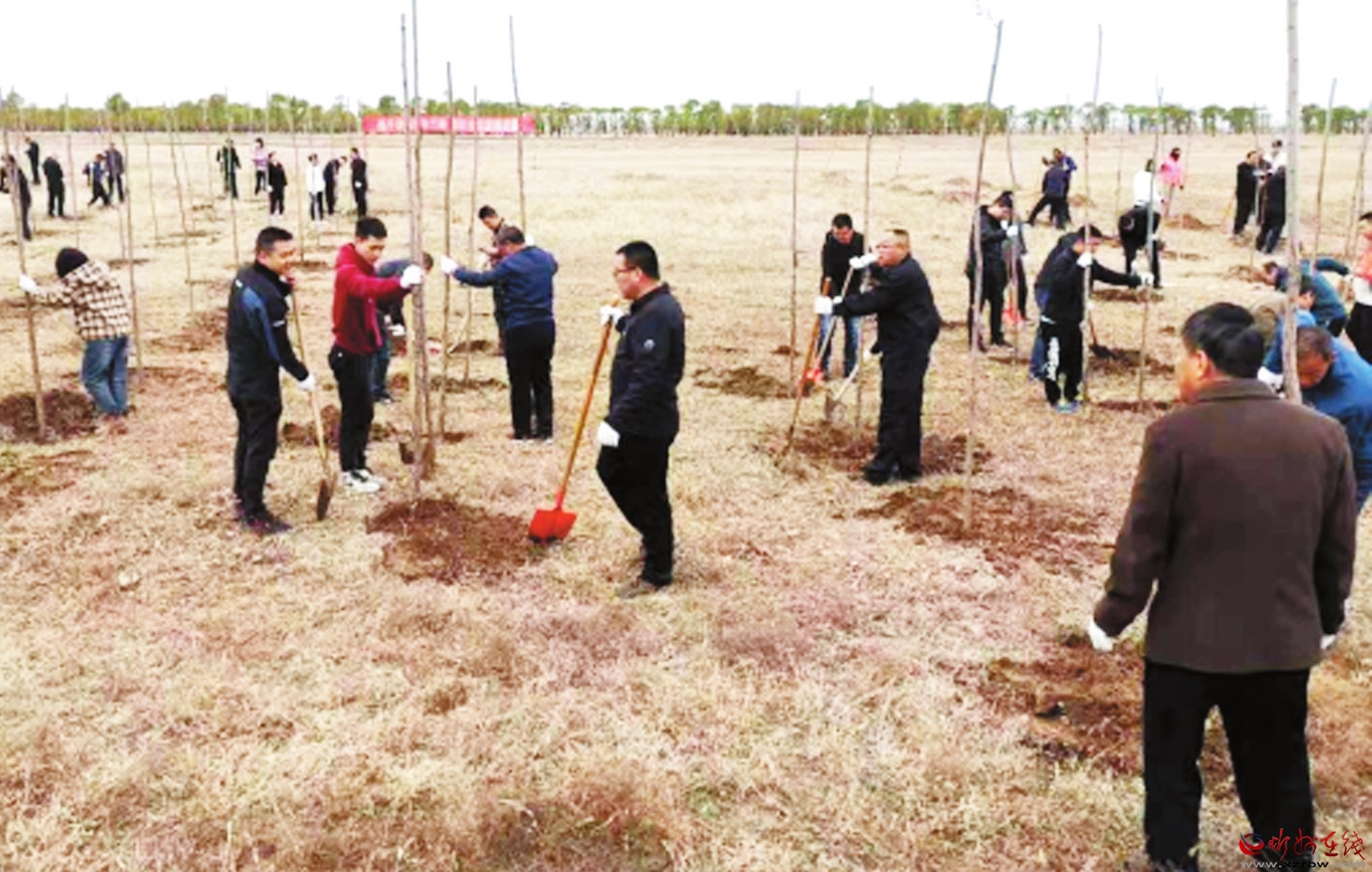 4月13日上午,市生態(tài)環(huán)境局定襄分局在滹沱河定襄縣受祿鄉(xiāng)段開展義務(wù)植樹活動(dòng)。植樹現(xiàn)場(chǎng),大家分工協(xié)作,揮鍬挖坑、扶苗澆水,共植樹百余株。該分局還在現(xiàn)場(chǎng)懸掛“積極開展高速沿線環(huán)境綜合整治 持續(xù)改善全縣生態(tài)環(huán)境質(zhì)量”的宣傳標(biāo)語(yǔ),營(yíng)造生態(tài)環(huán)境保護(hù)工作良好氛圍。(本報(bào)記者 張劍雄 攝)