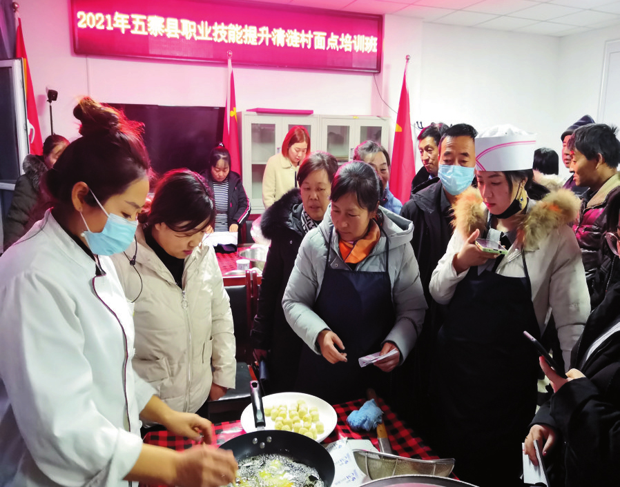 近日,市新華書店駐五寨縣前所鄉(xiāng)清漣村工作隊與村兩委班子聚焦鄉(xiāng)村振興實際需求,想村民所想,急村民所急,為村里有勞動能力無職業(yè)技能的群體聘請專業(yè)面點師,對他們進行面點技能培訓。培訓采取“理論+實訓”的模式,有利于提高農村勞動者素質,培育結構合理、技藝精湛、素質優(yōu)良的技能人才,引導廣大村民投身到美麗鄉(xiāng)村建設中來。(記者 張林泉 攝影報道)