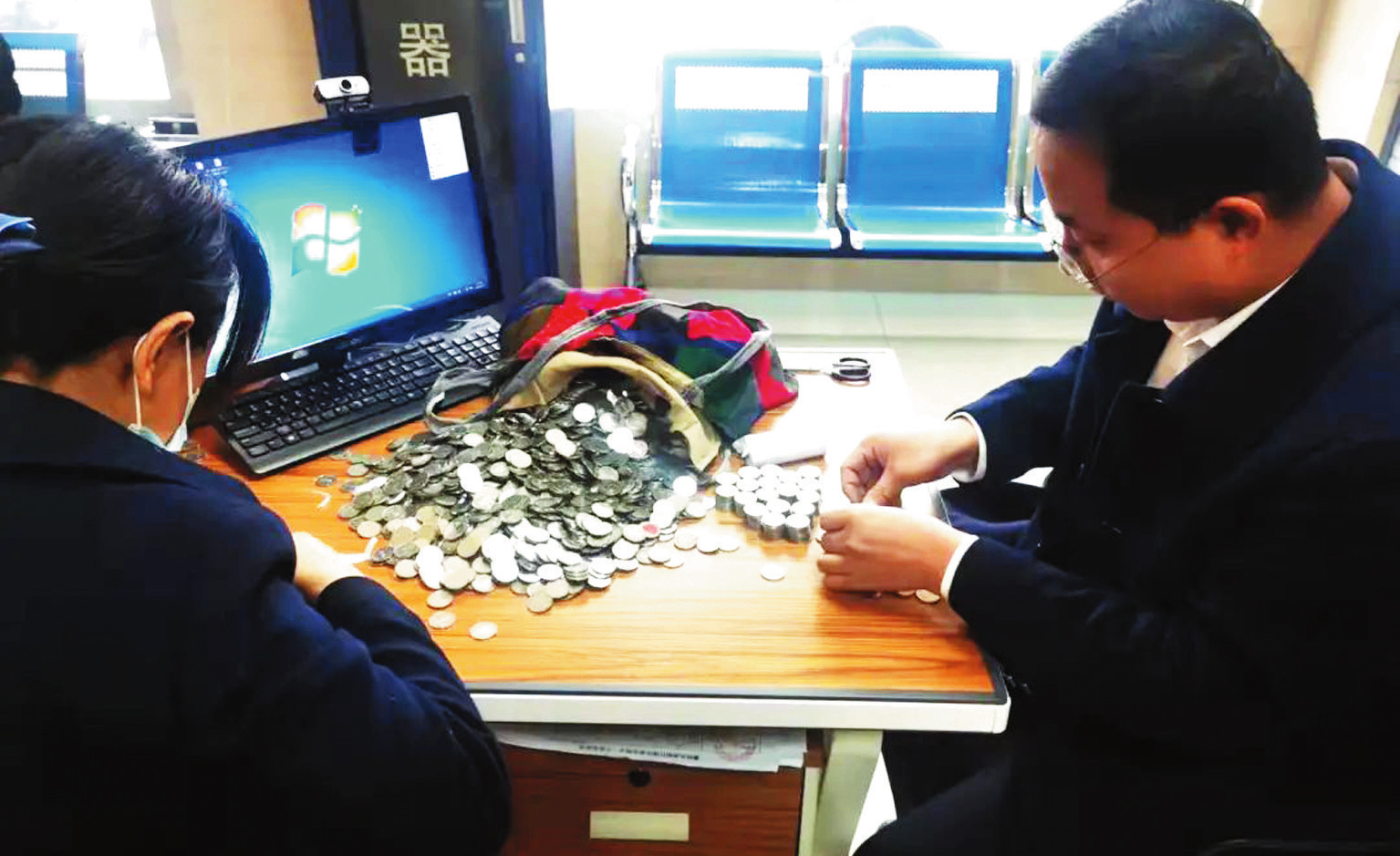 該行行長(zhǎng)閆俊斌聞?dòng)嵡皝?lái),迅速與同事們一起展開(kāi)清點(diǎn)工作,一邊碼硬幣一邊與老大爺談心聊天……得知大爺是小砂村人,天黑之前還要趕路回家,工作人員更是加快了清點(diǎn)的節(jié)奏。不到一小時(shí),3459枚硬幣清點(diǎn)、捆扎、兌換完成,拿到紙幣的大爺很是高興,直夸農(nóng)商行的服務(wù)態(tài)度好、工作效率高。