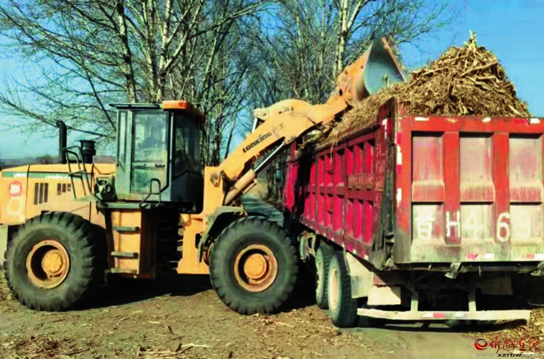 圖為神池縣八角鎮(zhèn)集中收秸點(diǎn)正在清運(yùn)秸稈。