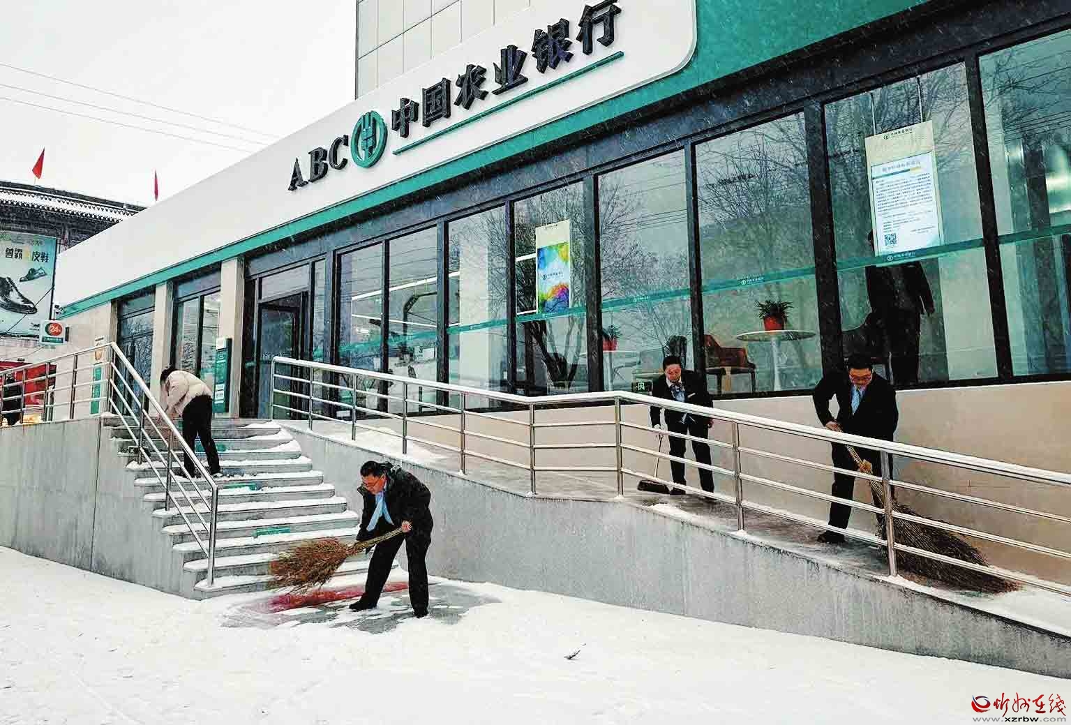 面對我市首場強降雪,農行忻州分行員工以雪為令,及時清掃網(wǎng)點及周邊區(qū)域,確保服務通道暢通無阻,以實際行動傳遞了溫暖的金融服務。(殷俊攝)