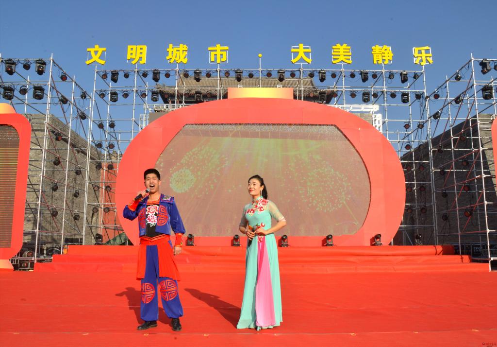 在北城門樓廣場的歌舞現(xiàn)場,二人臺對唱《拜大年》、歌曲《復(fù)興的力量》《牽著春風(fēng)進山村》、舞蹈《幸福中國一起走》、北路梆子《黃河管子聲》選段等精彩的節(jié)目陸續(xù)登臺,贏得廣大市民朋友的陣陣掌聲。