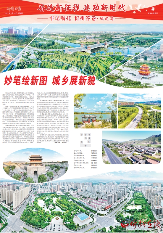 初秋的忻州,綠樹、花草與藍天白云交相輝映,漫步在城區(qū)大街上,城市美景讓人心曠神怡:一條條道路寬闊平坦,一幢幢高樓拔地而起,一處處公園生機盎然……十年來,忻州市委、市政府堅持以人民為中心的發(fā)展理念,改革創(chuàng)新、擔當作為、砥礪奮進,有力推動了住房和城鄉(xiāng)建設事業(yè)高質(zhì)量發(fā)展。