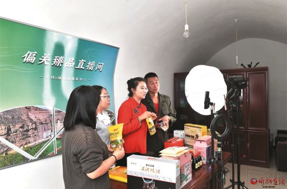 偏關(guān)鄉(xiāng)村e鎮(zhèn)公共服務(wù)中心直播帶貨現(xiàn)場。本報記者 馮曉磊攝