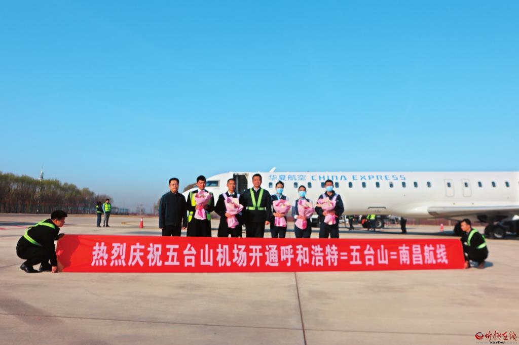 南昌-五臺山-呼和浩特航線成功首航。 本報(bào)記者 張志遠(yuǎn)攝