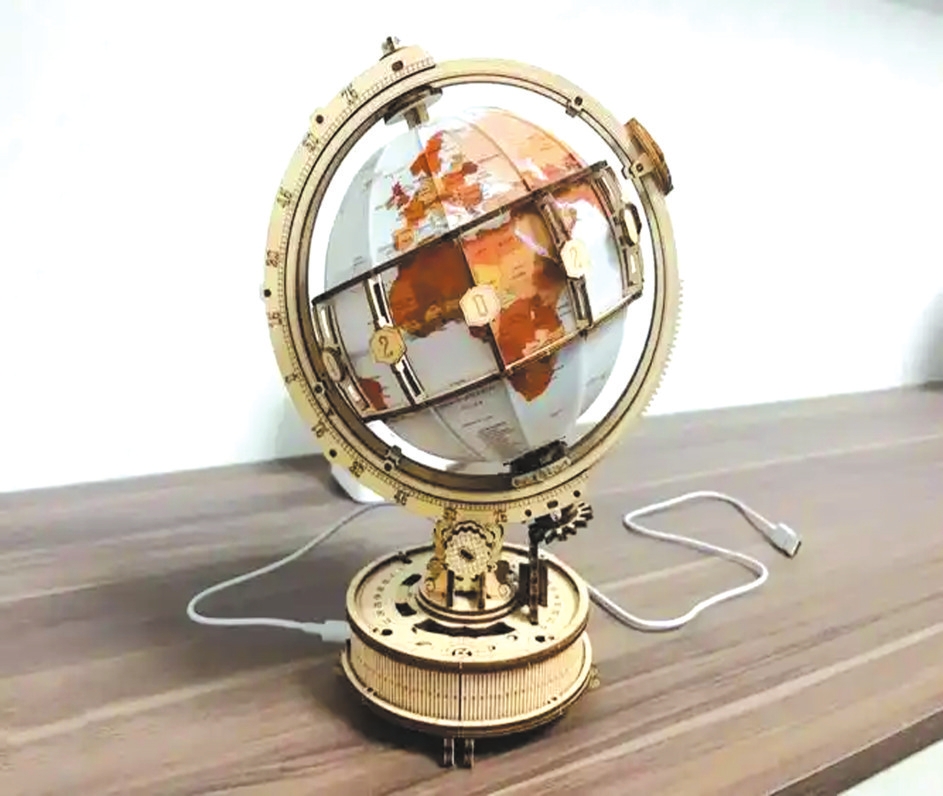 “沒用一顆釘子、一滴膠水,我們利用了榫卯技藝,讓108塊形狀各異的木構(gòu)件緊密連接,構(gòu)成一個鏤空的地球,祈盼世界團結(jié)、人類和平。”《榫卯的宇宙》編劇、忻州王爾文玩(魯班鎖、孔明鎖)(以下簡稱“王爾文玩”)傳統(tǒng)木作技藝非物質(zhì)文化遺產(chǎn)代表性傳承人趙永功說。
