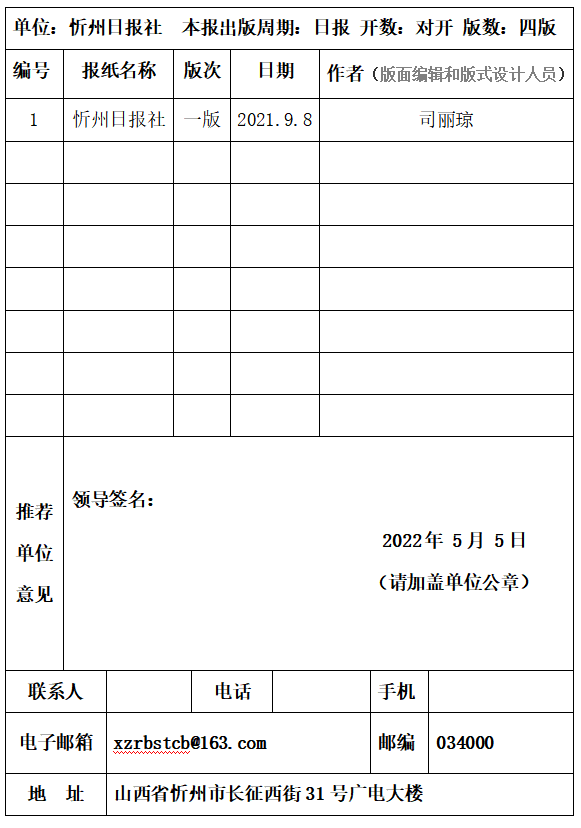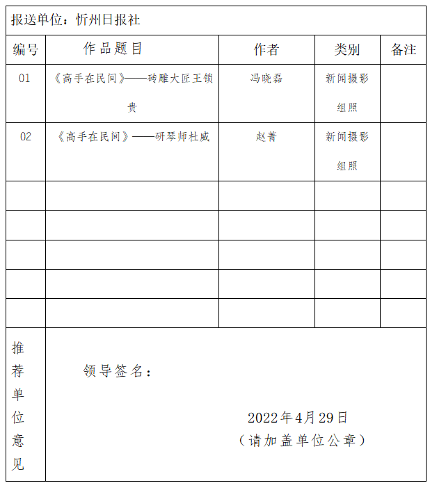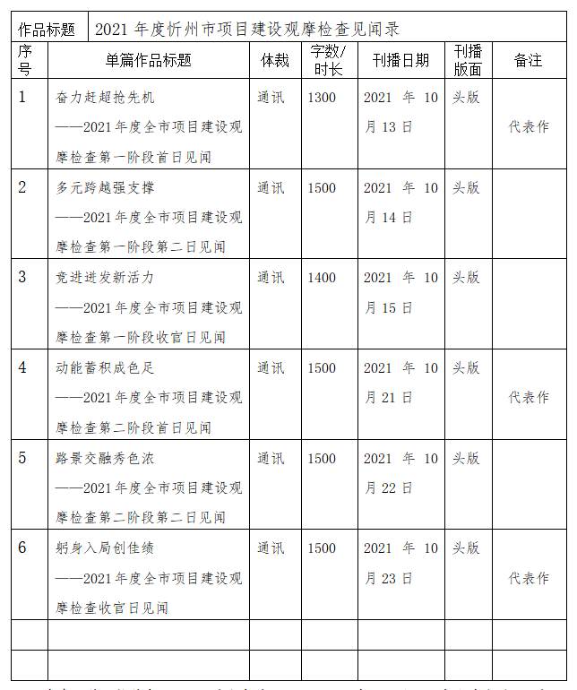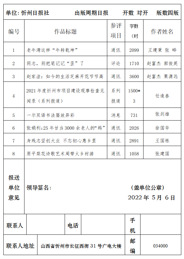 經(jīng)忻州日?qǐng)?bào)社編委會(huì)研究決定,以下作品擬推薦申評(píng)第三十一屆山西新聞獎(jiǎng),現(xiàn)予以公示。有反對(duì)意見(jiàn)者,請(qǐng)將反對(duì)意見(jiàn)書(shū)面報(bào)至統(tǒng)籌部。 忻州日?qǐng)?bào)社 2022年5月6日 山西新聞獎(jiǎng)報(bào)送作品目錄