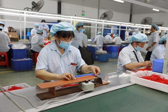 “以前村里就業(yè)機(jī)會(huì)不多,我們只能到外地去打工。現(xiàn)在村里有了加工廠(chǎng),我們可以一邊上班,一邊照顧家庭,收入還很可觀(guān)?!贝迕耨T彩霞告訴記者,“有一份穩(wěn)定的收入,走著路就能上班,這正是我想要的幸福小康生活。”