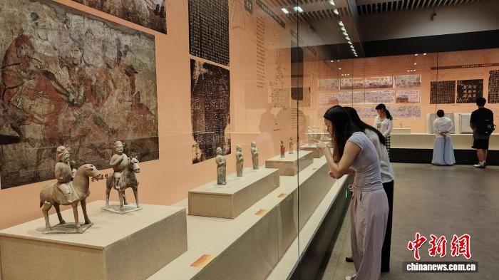 圖為陶俑。歐惠蘭 攝 本次展覽展示了太原博物館館藏文物中豐富的北朝隋唐時期晉陽精品文物遺存,秉承“以文物講述城市歷史”的總體定位,聚焦“依托豐富文物資源,講好精彩歷史故事”的文化主題。 展覽以“霸府——名都”的城市發(fā)展歷史為主線,依托婁睿墓、徐顯秀墓、韓祖念墓、虞弘墓等重大考古發(fā)現(xiàn),通過“巍巍雄鎮(zhèn)”“驚世古?!薄板\繡名都”三個展覽單元及展出的130余件(套)精品文物,包括晉陽古城遺址出土建筑構(gòu)件、婁睿墓出土陶俑、韓祖念墓出土鎏金銅器、天龍山石窟造像(3D打印)等特色文物,充分展示文物背后蘊(yùn)含的歷史文化,深刻揭示太原城市發(fā)展背后蘊(yùn)含的城市品格與人文精神。