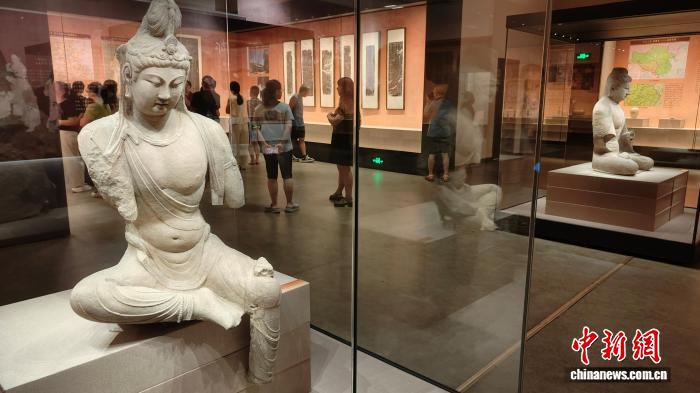 圖為3D打印的第21窟北壁西側(cè)菩薩坐像(左)。歐惠蘭 攝 中新網(wǎng)桂林9月2日電(歐惠蘭)9月2日,由桂林博物館與太原博物館聯(lián)合舉辦的“霸府名都——太原市博物館藏北朝隋唐文物展”在桂林博物館正式對公眾開放。
