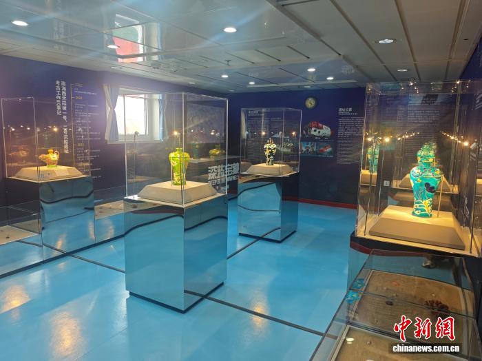 中國(海南)南海博物館館長辛禮學介紹,改造后的海上流動博物館核心展區(qū)推出了“深藍寶藏——南海西北陸坡一二號沉船考古成果特展”主題展覽,借助沉浸式場景還原、多媒體數(shù)字技術(shù)和精美復(fù)仿制文物,展現(xiàn)南海西北陸坡沉船遺址的地理位置、深海環(huán)境與考古成果。