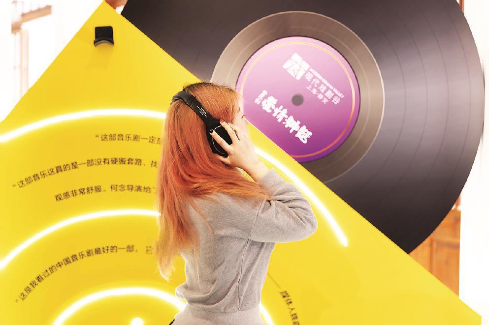 《愛情神話》限時(shí)快閃店內(nèi),市民游客正在“影音室”欣賞音樂劇唱段。(主辦方供圖)