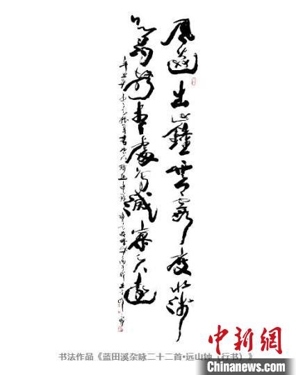 此次參展的《藍田溪雜詠二十二首·遠山鐘(行書)》是韓天衡精心創(chuàng)作的書法作品。他深入感受古詩的韻律和意境,將詩意融入筆墨之中,作品筆勢流暢、氣韻生動,展現(xiàn)了漢字的靈動之美與深厚的文化底蘊。