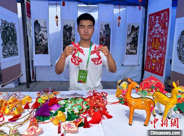 7月14日,甘肅省慶城職業(yè)中等專(zhuān)業(yè)學(xué)校學(xué)生張巖展示其剪紙作品。中新社記者 丁思 攝