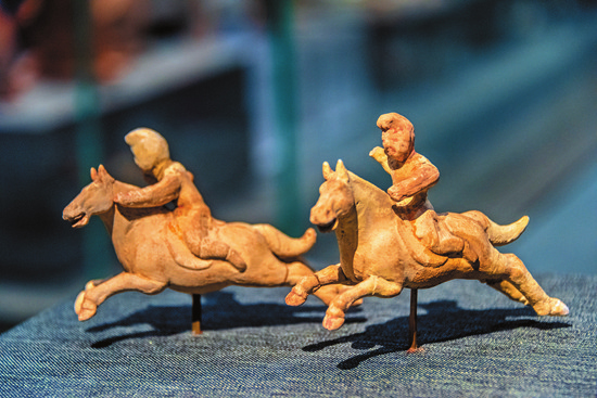 唐代打馬球的陶俑 唐代發(fā)明步打球——曲棍球 步打球是中國古代一種將馬球與蹴鞠結(jié)合起來的球類項目,類似現(xiàn)代曲棍球。唐代馬球盛行,陜西乾縣章懷太子墓出土的《打球圖》中,二十余名隊員騎著奔馬,手執(zhí)球杖,爭搶擊球,生動描摹了馬球運動的場景。 唐代皇帝也經(jīng)常親自下場打球,與民同樂。據(jù)《封氏聞見記》,唐中宗景龍三年(709年),吐蕃派使臣迎娶金城公主,中宗請使臣觀看馬球比賽。使臣奏言“臣部曲有善球者,請與漢敵”,要求派吐蕃選手與唐朝隊員比賽。中宗事前沒有準備,倉促之間只得讓數(shù)名禁軍將士上馬應(yīng)戰(zhàn),結(jié)果被有備而來、球技嫻熟的吐蕃隊員打得落花流水,幾場下來“吐蕃皆勝”。當時還是臨淄王的李隆基見狀,自告奮勇要求上場。中宗遂讓李隆基與虢王李邕、長寧公主駙馬楊慎交、安樂公主駙馬武延秀四人組隊與吐蕃比賽。雖是以四敵十,但李隆基等人“東西驅(qū)突,風回電激,所向無前”,大敗吐蕃,一展大唐國威。 隨著馬球的盛行,唐人結(jié)合馬球的球杖和蹴鞠的隊形,同時雜糅二者運動規(guī)則,發(fā)明出步打球,即下馬徒步持杖打球,亦稱“步打”。彼時宮女們經(jīng)常在寒食節(jié)為皇帝表演步打球,詩云“殿前鋪設(shè)兩邊樓,寒食宮人步打球。一半走來爭跪拜,上棚先謝得頭籌”。首先打進第一球即“得頭籌”的隊員,要向皇帝跪拜報捷,然后繼續(xù)比賽。 宋人亦喜好步打球,《宋朝事實類苑》中載“今有步打、徒打,不徒則馬打,大有規(guī)制禮格,用意奇巧,取其精練者為上”,李之儀亦有詩云“萬腔腰鼓打梁州,舞罷還催步打毬。更借纏頭三百萬,阿奴要徹第三籌”,可見當時步打球運動之盛。 水上運動:弄潮——游泳,水秋千——跳水 原始社會漁獵時期,華夏先民依山傍水而居,上山打獵,下水捕魚,在與水的長期接觸中逐漸學會了游泳?!对娊?jīng)》曰“就其深矣,方之舟之。就其淺矣,泳之游之”,意為過深河要乘舟坐船,過淺水游泳即可。“游”是浮游,“泳”則是潛泳,說明當時人們已具備潛泳技能。 《晏子春秋》中介紹齊國勇士古冶子的潛泳技藝高超,能“潛行逆流百步,順流九里”。故宮博物院收藏的戰(zhàn)國宴樂漁獵攻戰(zhàn)紋圖壺上,有蛙人潛入水中戰(zhàn)斗的場景,潛泳者揚臂蹬足,奮力游動,極似現(xiàn)代自由泳泳姿。 能在大江大河中搏擊風浪的游泳好手,被人們尊稱為“弄潮兒”。唐人李益曾作閨怨詩《江南曲》:“嫁得瞿塘賈,朝朝誤妾期。早知潮有信,嫁與弄潮兒?!蹦纤五X塘江弄潮是一大盛事,“浙江之潮,天下之偉觀也”。在“大聲如雷霆,震撼激射,吞天沃日,勢極雄豪”的潮水中,數(shù)百名弄潮兒“皆披發(fā)文身,手持十幅大彩旗,爭先鼓勇,溯迎而上,出沒于鯨波萬仞中,騰身百變,而旗尾略不沾濕,以此夸能”。辛棄疾夸他們“不怕蛟龍怒。風波平步??醇t旆驚飛,跳魚直上,蹙踏浪花舞”,潘閬更是贊嘆“弄潮兒向濤頭立,手把紅旗旗不濕”。 除了游泳這類常規(guī)水上運動,中國古代還有獨具特色的跳水項目,如宋代的“水秋千”運動。《東京夢華錄》記載,“有兩畫船,上立秋千”,“一人上蹴秋千”,當秋千擺動到幾乎與頂架橫木齊平時,表演者從秋千上凌空起跳,在空中完成翻筋斗等花樣動作后直插入水,“謂之水秋千”,類似今天的花樣跳水。選手跳水時,“左右軍院虞侯監(jiān)教鼓笛相和”。表演水秋千時,宮女們都會登上高樓,卷起珠簾,遙望觀賞。宋人王珪的《宮詞》云:“內(nèi)人稀見水秋千,爭擘珠簾帳殿前。第一錦標誰奪得,右軍輪卻小龍船。” 捶丸:極似高爾夫,還配球童 捶丸由步打球發(fā)展而來,但其更講究技巧,并不追求身體對抗。古有《丸經(jīng)》一書,詳細講述了捶丸運動的場地要求、比賽規(guī)則、器具使用技巧等,可謂當時人們競技捶丸的實操手冊。不論是比賽規(guī)則,還是球杖規(guī)格、人員配置,捶丸都與西方的高爾夫運動極其相似。 捶丸比賽前,要在場地上挖出球穴,稱為“窩”,邊上插有彩色旗幟作為標志。選手上場后,用球杖擊打硬木球,將其送入窩中為勝。計算輸贏則以桿數(shù)為準,“初棒贏二棒,二棒贏三棒,三棒贏四棒是也”,用最少揮桿次數(shù)將球打進窩中者贏得比賽。 根據(jù)《丸經(jīng)》介紹,捶丸比賽場地“地形有平者、有凸者、有凹者、有峻者、有仰者、有阻者、有妨者、有迎者、有里者、有外者”。參賽者要結(jié)合自身特點選用不同球杖,如正棒、倒棒、攛棒、撲棒等。不同球杖可打出不同力度、方向,一般站立打遠球用撲棒,蹲下打近距離的球則用攛棒。 由于捶丸使用球杖較多,人們還專門制作了盛放球杖的器具。據(jù)《丸經(jīng)》載,“撲棒”置于“草囊”中,“攛棒”放于“提籃”里。大戶人家還會讓仆人專門跟隨自己打球,專職負責攜帶球杖,這也與高爾夫球童的工作很是相似。 木射:酷似保齡球,寓教于樂 盡管至今仍未成為奧運會正式比賽項目,但保齡球曾在1996年亞特蘭大奧運會上作為示范表演項目出現(xiàn)。在中國古代,有一項運動名為“木射”,又稱“十五柱戲”,是一種用手拋球的運動,與現(xiàn)在的保齡球十分相似。唐人陸秉有《木射圖》,記載了木射的比賽規(guī)則,可惜早已失傳。幸好宋人晁公武的《郡齋讀書志》對《木射圖》進行了簡單記錄,讓我們能一窺當年木