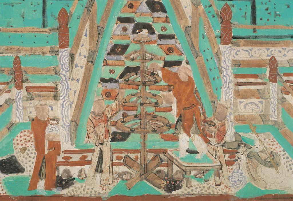 花好月圓夜,人們擺設(shè)香案、放置供品,敬奉月神。敦煌研究院介紹,在莫高窟第103窟的壁畫中,描繪了古人們頭頂明月、圍繞寶塔祭拜的場景。