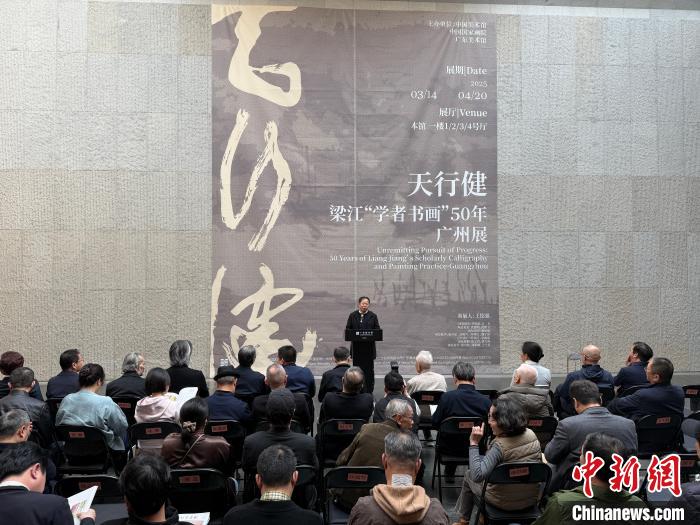 中新網(wǎng)廣州3月16日電 (記者 方偉彬)天行健——梁江“學(xué)者書畫”50年廣州展16日在廣東美術(shù)館開幕,活動由中國美術(shù)館、中國國家畫院、廣東美術(shù)館共同主辦。