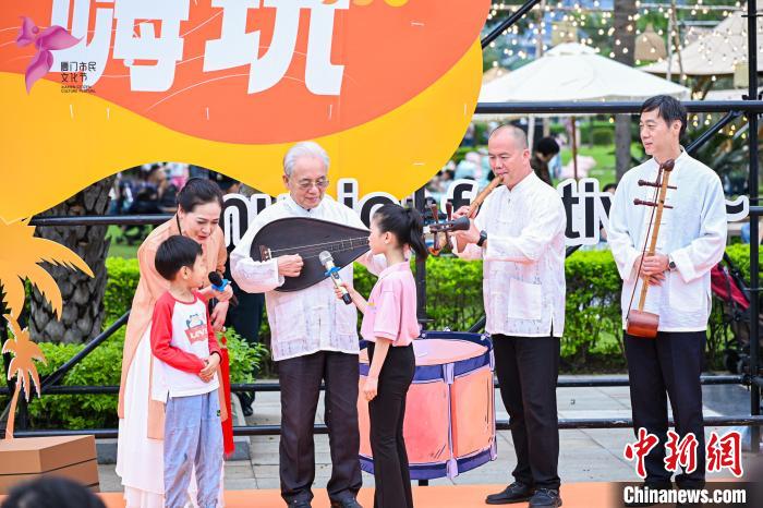 2024年5月,2024年廈門市民文化節(jié)上,卓圣翔(左三)與兒童觀眾互動。(羅純禎 供圖)