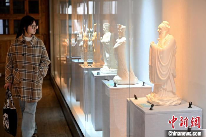 2日,“素白凝光——德化白瓷藝術(shù)傳承展”在位于福州三坊七巷的福建省海峽民間藝術(shù)館開幕,吸引游客參觀游覽。中新網(wǎng)記者 呂明 攝
