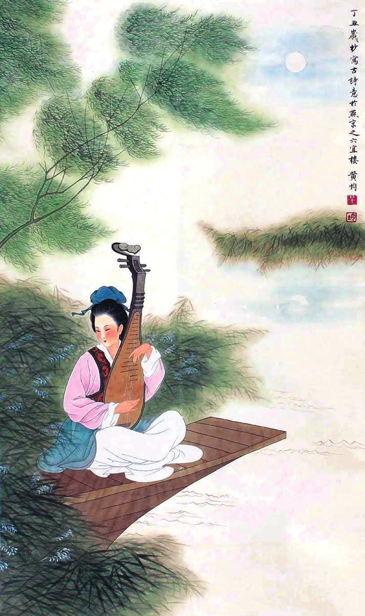 唐代的琵琶發(fā)展出現(xiàn)了一個高峰。上至宮廷樂隊,下至民間演奏,都少不了其身影,琵琶的樂隊領奏地位也是在那時奠定的。唐代詩人白居易在《琵琶行》中生動描繪了琵琶演奏場景和其音樂效果:“大弦嘈嘈如急雨,小弦切切如私語。嘈嘈切切錯雜彈,大珠小珠落玉盤。”