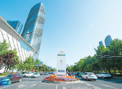 位于成都天府大道的大運(yùn)會倒計(jì)時裝置。