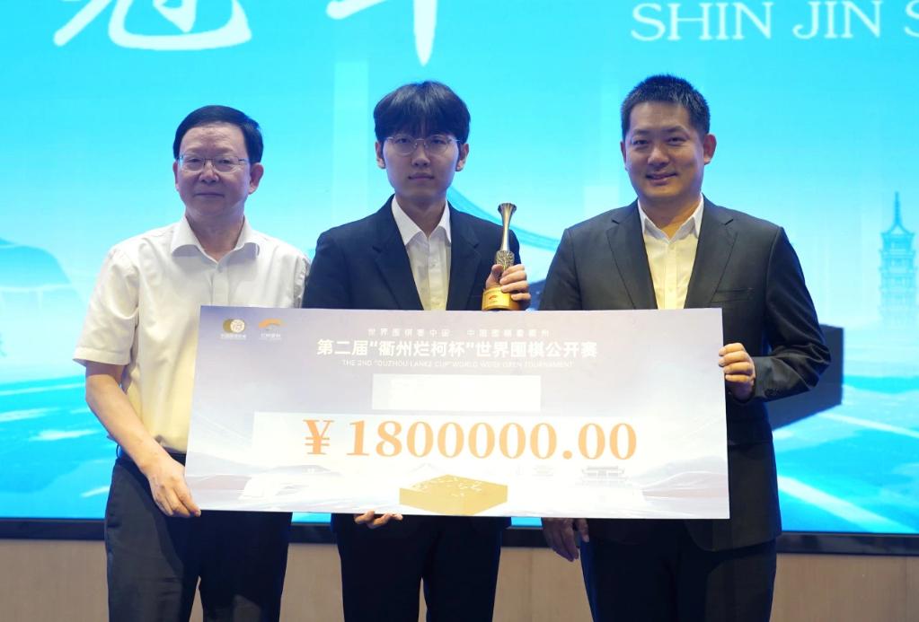 中國圍棋協(xié)會主席常昊等為參賽棋手頒獎。本次比賽冠軍獎金為180萬元人民幣,亞軍獎金為60萬元人民幣。