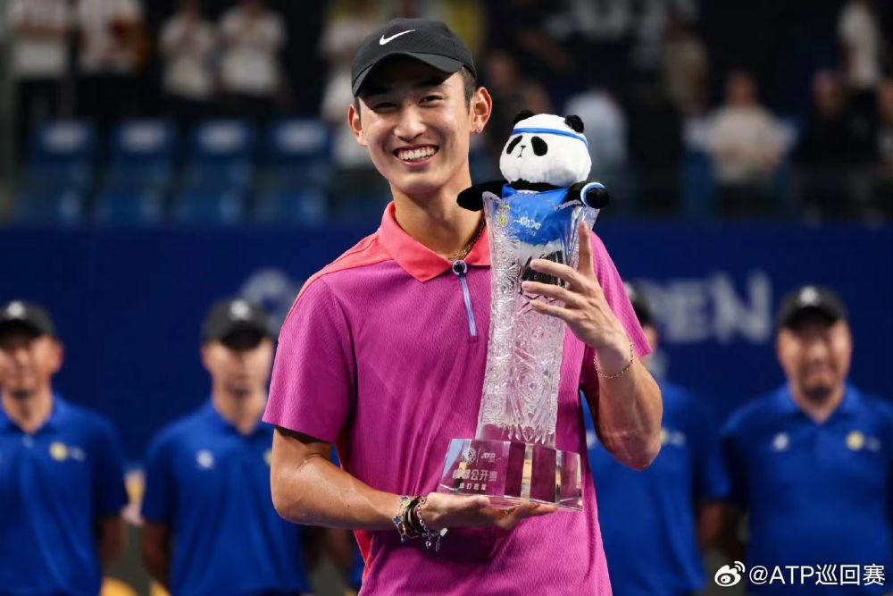 商竣程在ATP250成都站頒獎儀式上。圖片來自ATP巡回賽官方微博