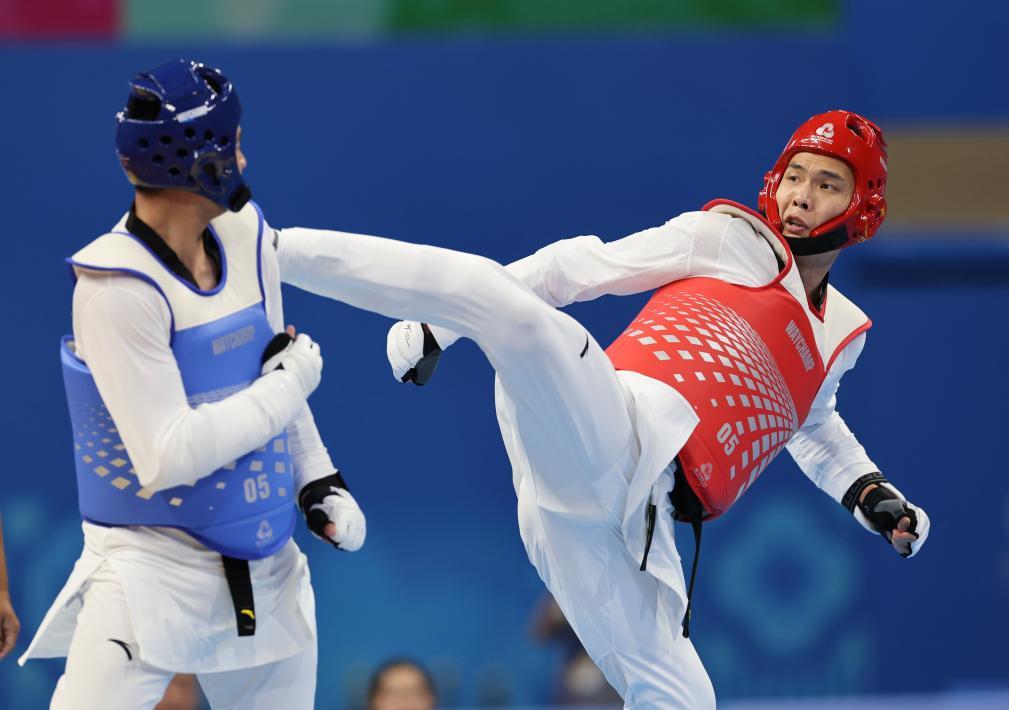 男子80公斤以上級(jí)決賽中,廣東隊(duì)選手王要錫在主場(chǎng)迎戰(zhàn)山東隊(duì)選手劉朝陽(yáng)。首局,王要錫憑借中段和高位連續(xù)得分,以12:4輕松取勝。第二局,王要錫率先完成側(cè)踢得分,劉朝陽(yáng)在追分過(guò)程中出現(xiàn)犯規(guī),最終王要錫再下一局,以總比分2:0獲勝,為廣東隊(duì)再添一金。