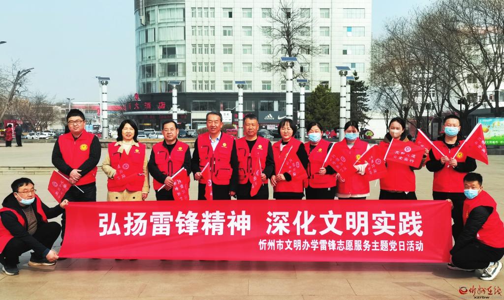 3月21日,忻州市文明辦機(jī)關(guān)支部全體黨員開展“弘揚(yáng)雷鋒精神 深化文明實(shí)踐”志愿服務(wù)主題黨日活動(dòng)。本次活動(dòng)旨在進(jìn)一步弘揚(yáng)雷鋒精神,激發(fā)廣大人民群眾“學(xué)雷鋒見行動(dòng)”的積極性和創(chuàng)造性,凝聚起奮進(jìn)新征程、建功新時(shí)代的強(qiáng)大精神力量和有力的道德支撐。