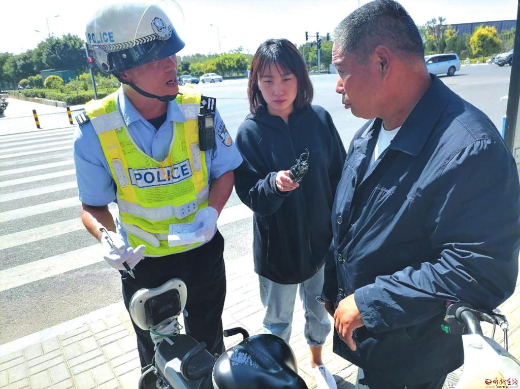 中午12點30分,另一路參加整治的民警在忻州火車站附近發(fā)現(xiàn)市民郝某騎電動車逆向行駛。古城大隊民警當即將郝某攔下,進行嚴肅的批評教育,并依據(jù)《中華人民共和國道路交通安全法》第三十五條規(guī)定,對當事人處以20元的罰款。郝某對自己的行為十分自責:“俺經(jīng)常教育孩子文明禮貌,今兒個自己做錯事,咋面對小孩呢!”