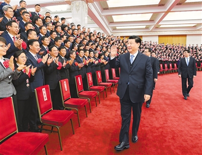 下午3時(shí)30分,習(xí)近平等來到人民大會(huì)堂北大廳,全場響起熱烈掌聲。習(xí)近平等向代表們揮手致意,同大家親切交流并合影留念。