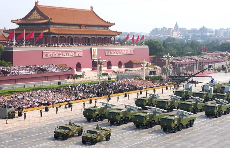 △2025年9月3日,紀念中國人民抗日戰(zhàn)爭暨世界反法西斯戰(zhàn)爭勝利80周年大會在北京隆重舉行。這是艦載防空武器方隊接受檢閱。