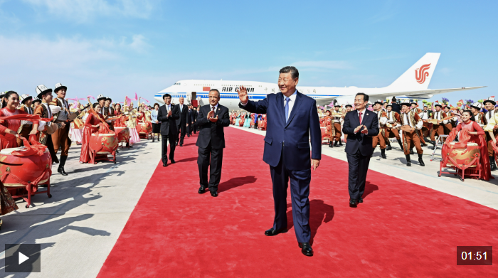 中共中央總書(shū)記、國(guó)家主席、中央軍委主席習(xí)近平率中央代表團(tuán)23日下午乘專機(jī)抵達(dá)烏魯木齊,出席新疆維吾爾自治區(qū)成立70周年慶?;顒?dòng)。習(xí)近平等在機(jī)場(chǎng)和烏魯木齊市區(qū)受到新疆各族群眾的熱烈歡迎。中共中央政治局常委、全國(guó)政協(xié)主席、中央代表團(tuán)團(tuán)長(zhǎng)王滬寧,中共中央政治局常委、中央辦公廳主任蔡奇等同機(jī)抵達(dá)。