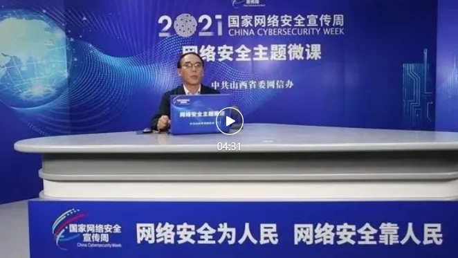 為深入宣傳貫徹習(xí)近平總書記關(guān)于網(wǎng)絡(luò)強(qiáng)國的重要思想,深入宣傳貫徹習(xí)近平總書記對網(wǎng)絡(luò)安全工作“四個(gè)堅(jiān)持”的重要指示,深入宣傳《中華人民共和國網(wǎng)絡(luò)安全法》和相關(guān)法律法規(guī),由山西省委網(wǎng)信辦主辦的2021國家網(wǎng)絡(luò)安全宣傳周山西“網(wǎng)絡(luò)安全主題微課”活動(dòng)于10月11日開始全網(wǎng)推送。