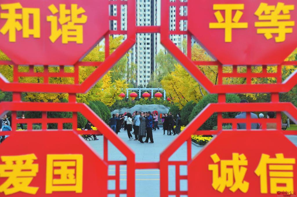 在我市中心城區(qū)的公園、廣場和城市綠地中,以社會主義核心價值觀、文明城市創(chuàng)建、優(yōu)秀傳統(tǒng)文化等為主題的宣傳展板、景觀造型隨處可見,在弘揚(yáng)傳統(tǒng)文化、傳播城市文明的同時,給市民帶來視覺上的藝術(shù)享受,讓游客在游園賞景中受到熏陶。 (張存良 攝)