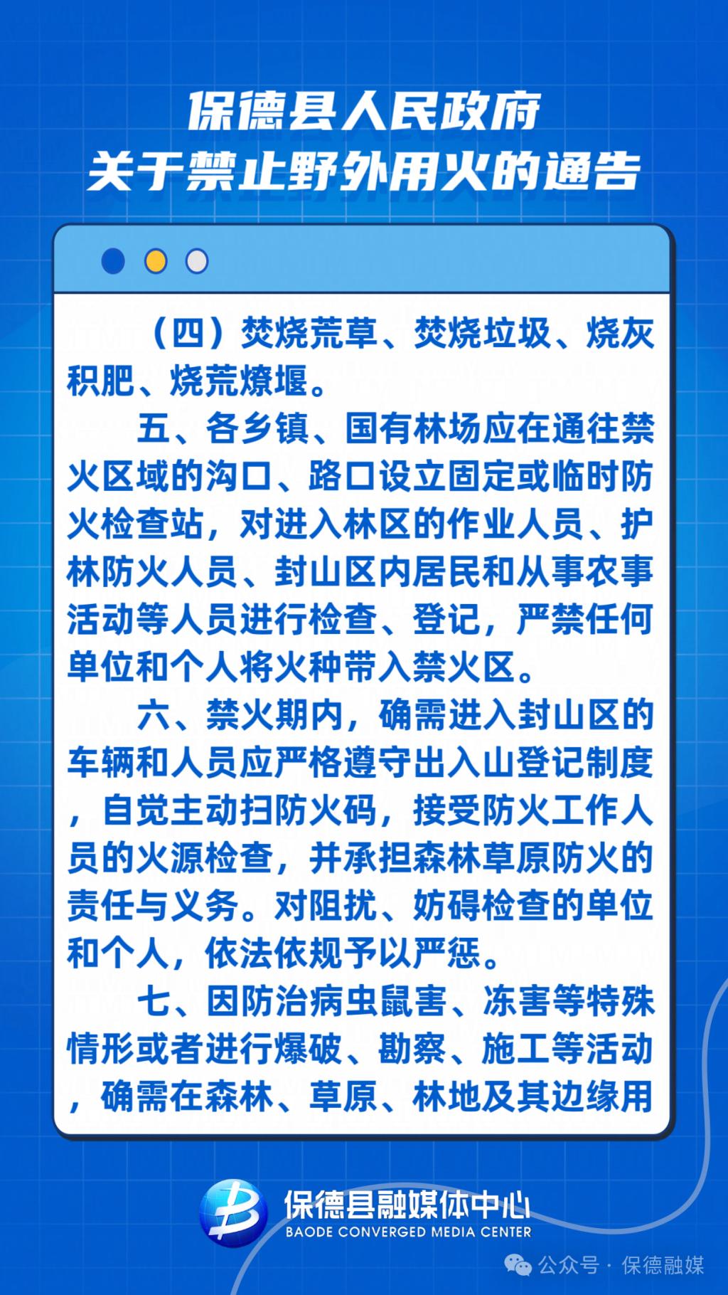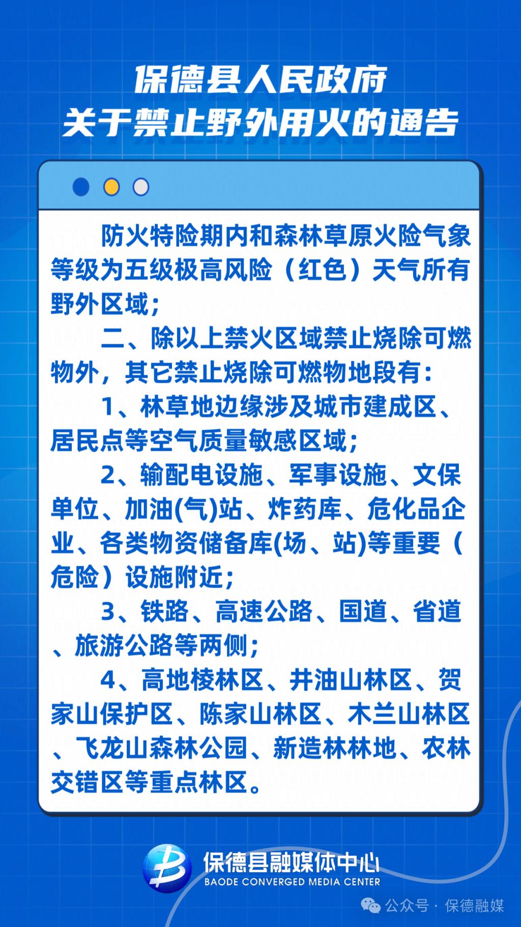 保德縣人民政府關(guān)于禁止野外用火的通告