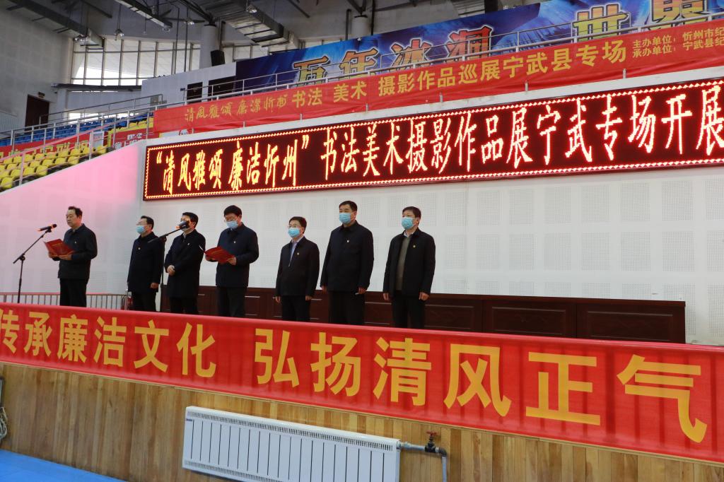 筆墨書(shū)廉潔,丹青揚(yáng)正氣。11月27日,由忻州市紀(jì)委監(jiān)委主辦、寧武縣紀(jì)委監(jiān)委承辦的“清風(fēng)雅頌·廉潔忻州”書(shū)法美術(shù)攝影作品巡展寧武縣專(zhuān)場(chǎng)在縣體育館隆重開(kāi)展。寧武縣委書(shū)記任寧虎在開(kāi)展儀式上講話并宣布開(kāi)展??h委常委、縣紀(jì)委書(shū)記、監(jiān)委主任尹志剛主持開(kāi)展儀式。縣四套班子領(lǐng)導(dǎo)和其他縣處級(jí)領(lǐng)導(dǎo),各縣直單位、各鄉(xiāng)(鎮(zhèn))的主要領(lǐng)導(dǎo),全縣紀(jì)檢監(jiān)察干部,共計(jì)180余人參加儀式。