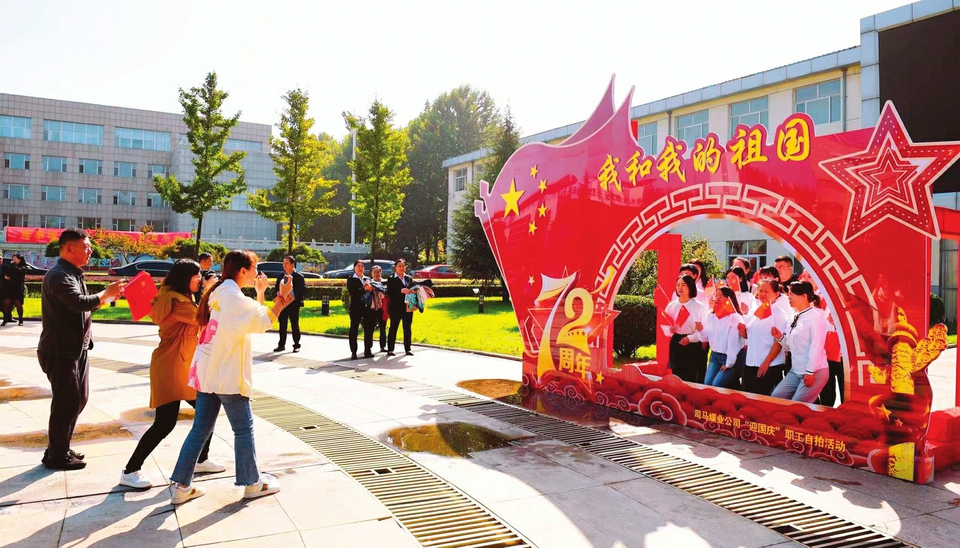 在中華人民共和國成立72周年到來之際,潞安化工集團司馬煤業(yè)有限公司舉辦了“奮斗百年路·啟航新征程”職工自拍活動并設置“節(jié)日合影墻”,營造出濃厚的節(jié)日氛圍。(秦鴻彬攝)