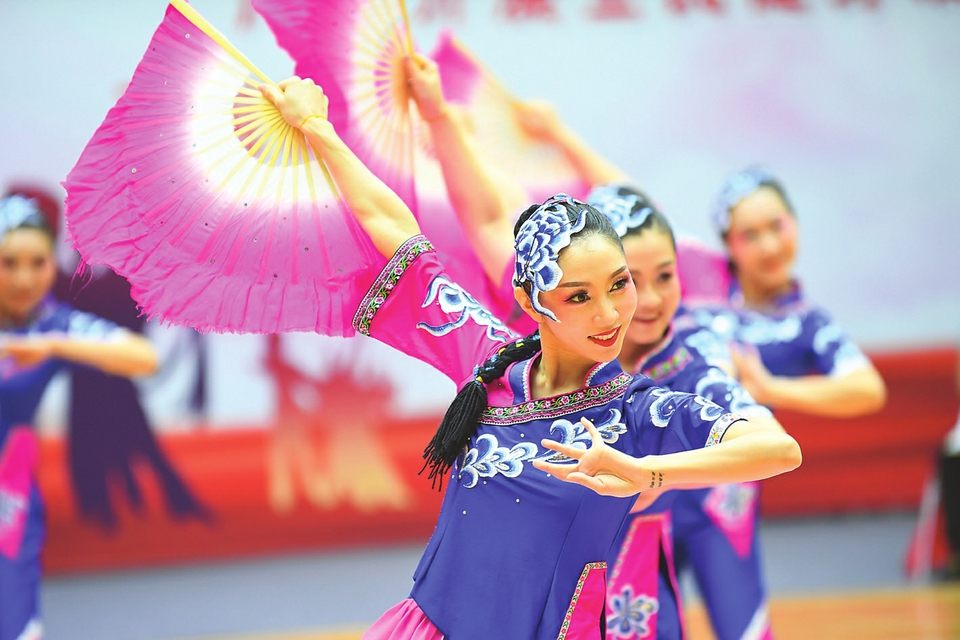 進入決賽的健身秧歌代表隊正在表演。