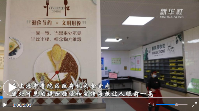 “點(diǎn)菜點(diǎn)少、不夠再添”“光盤(pán)行動(dòng)、從我做起”“厲行節(jié)約、反對(duì)浪費(fèi)”……在上海市普陀區(qū)政府機(jī)關(guān)食堂內(nèi),隨處可見(jiàn)的提示標(biāo)語(yǔ)和宣傳海報(bào)讓人眼前一亮。