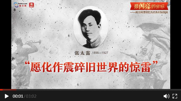 編者按:清明憶英烈,忠魂貫長空。4月1日至5日,南方網(wǎng)、粵學(xué)習(xí)客戶端策劃推出“最閃亮的坐標(biāo)”系列短視頻,通過挖掘廣東革命烈士的光輝事跡,與大家一起緬懷英烈、學(xué)習(xí)英烈。今天推出第二篇《張?zhí)祝涸富髡鹚榕f世界的驚雷》。 1927年12月11日凌晨3時(shí)30分,隨著三顆耀眼的紅色信號(hào)彈劃破夜空,震驚中外的廣州起義爆發(fā)了。當(dāng)天上午,起義軍占領(lǐng)了珠江北岸大部分地區(qū),時(shí)任廣東省委書記張?zhí)仔紡V州蘇維埃政府成立。次日,敵軍發(fā)起猛烈反撲,張?zhí)自谮s赴前線指揮戰(zhàn)斗途中,遭到敵人伏擊,壯烈犧牲。 張?zhí)自麖堅(jiān)?,自?hào)“長鋏”。一開始,張?zhí)椎娜松?guī)劃很簡單:就是想畢業(yè)后當(dāng)個(gè)律師,既能實(shí)現(xiàn)鏟除人間不平的夙愿,也能賺錢侍奉寡母,過上好的生活。十月革命之后,馬克思主義在中國廣泛傳播,張?zhí)自谒枷肷习l(fā)生了很大的轉(zhuǎn)變。他開始積極參加革命活動(dòng),并對(duì)同學(xué)說:“國家興亡,匹夫有責(zé)。只有走十月革命的路,才能救中國?!弊源?,他改名“張?zhí)住?,寓意“愿化作震碎舊世界驚雷”。 五四運(yùn)動(dòng)爆發(fā)后,張?zhí)滓詷O大的熱情投身其中,成為天津地區(qū)的骨干之一。他參加了北洋大學(xué)學(xué)生組織的演講團(tuán),經(jīng)常在課后穿上粗布衣到天津市內(nèi)及周邊城鎮(zhèn)、鄉(xiāng)村進(jìn)行宣傳活動(dòng)。他主動(dòng)與工人們一起做工,用省下來的生活費(fèi)買糖果、茶水接待工人,隨身攜帶的行李箱也常塞滿了各種宣傳小冊(cè)子。 大學(xué)畢業(yè)時(shí),張?zhí)讻]有領(lǐng)取北洋大學(xué)畢業(yè)證書,立即奔赴到緊張的革命工作中。 張?zhí)椎耐庹Z水平很高,英語非常流利,還會(huì)俄語。他受黨的委派長期擔(dān)任共產(chǎn)國際代表的助手和翻譯,整日忙碌,以超人的精力搜集和整理資料,在許多重大會(huì)見中發(fā)揮了十分重要的作用。 張?zhí)资屈h內(nèi)參加外事活動(dòng)最多的領(lǐng)導(dǎo)人,但他的個(gè)人財(cái)產(chǎn)只有兩套因工作需要買的西裝。每次出差剩余的經(jīng)費(fèi)他都全部交還給黨,不作私用。當(dāng)時(shí)他的生活費(fèi)每月有7塊錢,他只留下3塊錢當(dāng)伙食費(fèi),其他的錢用于接濟(jì)工友,以至于自己經(jīng)常吃不飽。有時(shí)為了接濟(jì)身邊的同志,他還把西裝送進(jìn)當(dāng)鋪進(jìn)行周轉(zhuǎn),待外出前再贖回來。 回顧張?zhí)兹朦h后的幾年,他都是形跡匆匆奔走于國內(nèi)外,為加深國共兩黨與共產(chǎn)國際之間的信任和理解,為促成國共合作、建立革命的統(tǒng)一戰(zhàn)線,做出了積極貢獻(xiàn)。伴隨著革命形勢的發(fā)展,他自幼“要鏟除人間不平”的志向,已具化為以青春熱血詮釋對(duì)黨忠誠的奮斗與實(shí)踐。他的犧牲,正如在中國大地上響起一道驚雷,震碎舊世界的黑暗,換來新中國的曙光。 【簡介】張?zhí)祝?898—1927),原名張?jiān)?,字泰來,江蘇武進(jìn)人。1915年考入天津北洋大學(xué)法科學(xué)習(xí)。1919年投身五四運(yùn)動(dòng),隨后接受共產(chǎn)主義思想。1920年10月加入北京共產(chǎn)黨早期組織。大革命時(shí)期多次擔(dān)任共產(chǎn)國際代表在中國的翻譯。歷任青年團(tuán)中央總書記、中共中央南方局書記兼廣東省委書記等職。1927年12月在廣州起義戰(zhàn)斗中犧牲。張?zhí)资侵泄矚v史上第一個(gè)犧牲在戰(zhàn)斗第一線的中央政治局成員,中國共產(chǎn)黨早期的重要領(lǐng)導(dǎo)人之一,中國共產(chǎn)主義青年團(tuán)的重要?jiǎng)?chuàng)建人和領(lǐng)導(dǎo)者。