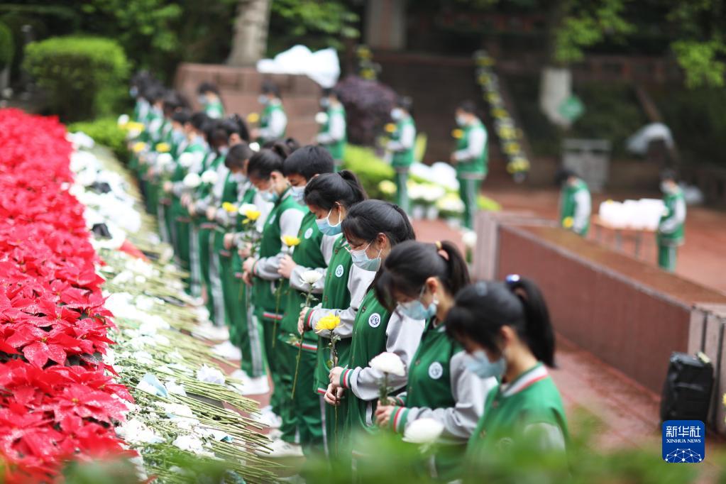 4月4日,在貴州省赤水市紅軍烈士陵園,赤水一中師生祭奠紅軍烈士。