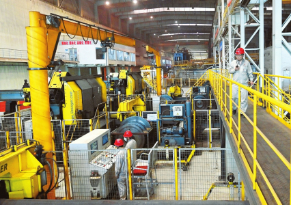 在環(huán)形爐控制室,俯瞰窗外火熱的生產(chǎn)現(xiàn)場(chǎng),只見(jiàn)鋸切、加熱、預(yù)成型、成型、軋制、壓彎各工序井然有序,智能高效的生產(chǎn)場(chǎng)景令參觀者嘖嘖稱贊。