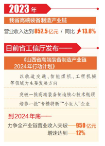 省工信廳日前發(fā)布《山西省高端裝備制造產(chǎn)業(yè)鏈2024年行動(dòng)計(jì)劃》,確立年度推進(jìn)目標(biāo):以軌道交通、智能煤機(jī)、工程機(jī)械等領(lǐng)域?yàn)橹饕l(fā)展方向,突破一批高端裝備制造核心技術(shù)瓶頸,培養(yǎng)一批“專(zhuān)精特新”“小巨人”企業(yè),提升全產(chǎn)業(yè)鏈科技創(chuàng)新能力,強(qiáng)化高端裝備制造供應(yīng)鏈穩(wěn)定性和配套能力。并提出,到2024年底,力爭(zhēng)全產(chǎn)業(yè)鏈營(yíng)業(yè)收入突破950億元,增速達(dá)到12%。