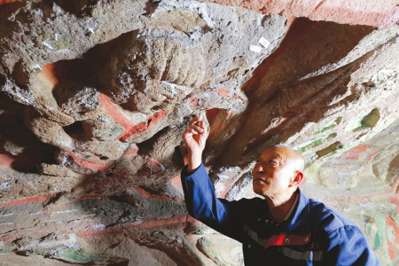 云岡研究院文保修復(fù)人員正在對受損文物進(jìn)行修復(fù)。趙文貴攝