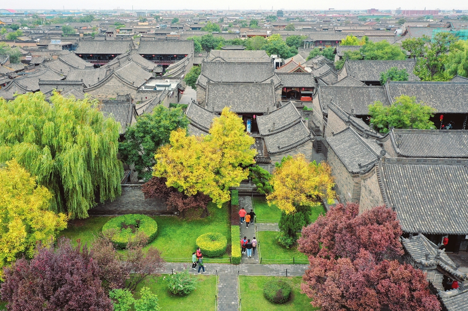 10月4日,游人在世界文化遺產(chǎn)平遙古城游覽。當(dāng)日是我國傳統(tǒng)節(jié)日重陽節(jié),又逢國慶長假,人們來到平遙古城,登高遠(yuǎn)眺,秋游觀景,歡度佳節(jié)。