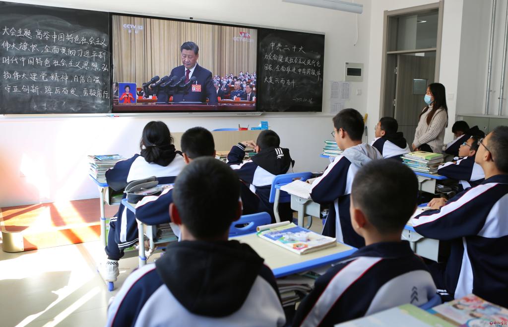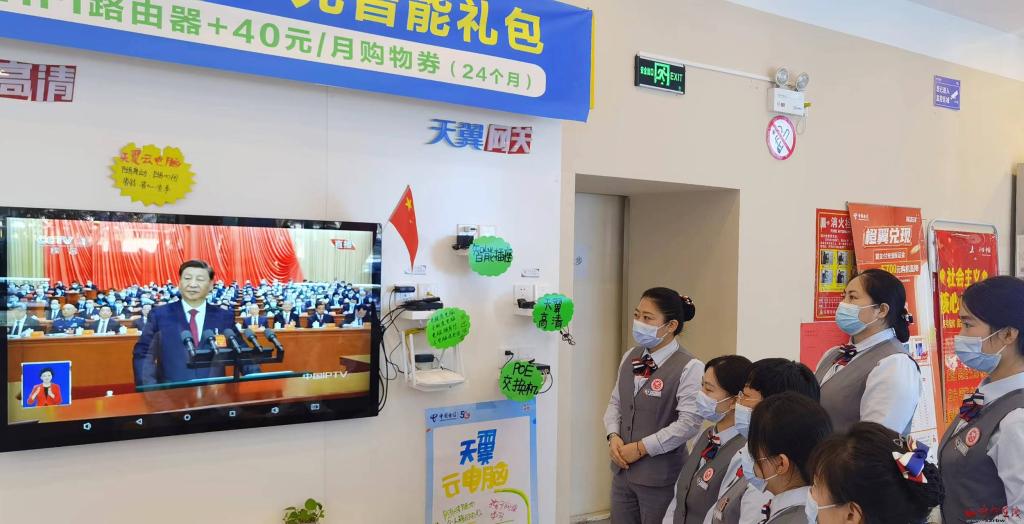 忻州城區(qū)電信七一北路中心營業(yè)廳組織職工收看。宮清華 攝 忻州市第一中學的校園處處洋溢著歡快、自豪的氣氛,師生們通過不同渠道,共同見證著這一歷史時刻。看完直播后,教師劉津帆意猶未盡。她說:“前不久,我們剛剛迎來建校120周年華誕,如今,又喜迎黨的二十大勝利召開,心中的歡欣鼓舞、自豪之情真是無以言表。作為一名人民教師,要始終牢記為黨育人、為國育才的光榮使命,堅決執(zhí)行黨中央的教育方針政策,培根鑄魂,啟智潤心,培養(yǎng)德智體美勞全面發(fā)展的社會主義建設者和接班人?!?/p>