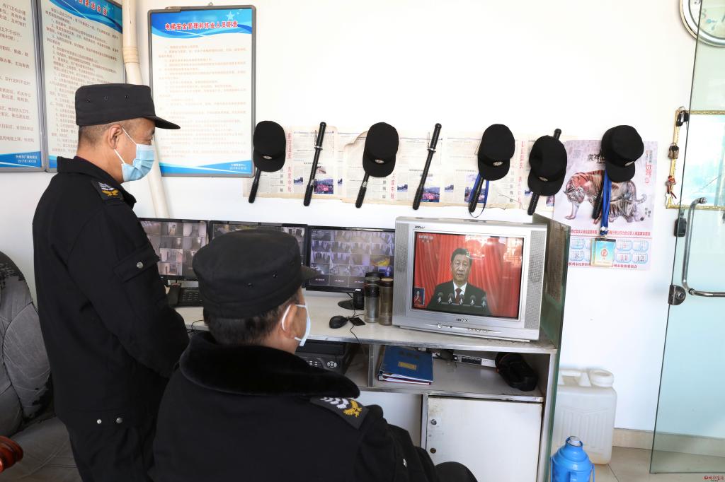 廣電大樓保安觀看大會。范濤 攝 在忻府區(qū)秀容街道南關社區(qū),社區(qū)干部和居民自發(fā)來到社區(qū)活動室,圍坐在一起,認真觀看開幕會實況,幸福的笑容洋溢在臉上。工作人員楊琳說:“太興奮了。回首過去五年,感到無比自豪。接下來,將進一步貫徹落實黨的二十大精神,繼續(xù)堅持理論學習與基層實踐相結合,將社區(qū)群眾在日常生活中的‘急難愁盼’放在心上,多為百姓辦實事、辦好事,在平凡的崗位上書寫不平凡的工作業(yè)績?!?/p>