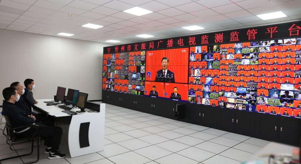 忻州廣電網(wǎng)絡公司確保安全播出。范濤 攝 在兩個小時的時間里,市委宣傳部新聞科科長張國彥聚精會神地收看著二十大開幕直播,隨身攜帶的筆記本上記滿了要點。“真的太激動了。黨的二十大是在全黨全國各族人民邁上全面建設社會主義現(xiàn)代化國家新征程、向第二個百年奮斗目標進軍的關鍵時刻召開的一次十分重要的大會。今后,要切實把學習宣傳貫徹黨的二十大精神作為首要政治任務,在學懂、弄通、做實上下功夫,在帶頭學、促進學、深入學上下功夫,用黨的二十大精神統(tǒng)一思想、凝聚力量,統(tǒng)攬全局、謀劃工作,為全方位推動忻州高質量發(fā)展作出自己應有的貢獻?!?/p>
