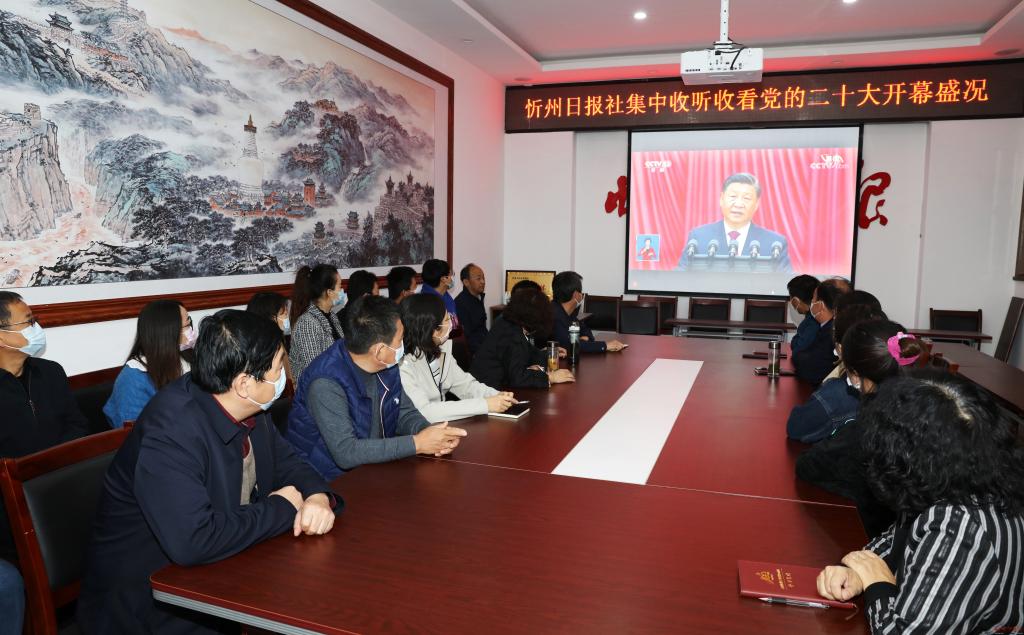 忻州日報社組織采編人員收看。范濤 攝 千里之外,同一時刻,我市干部群眾通過電視、手機、廣播、網(wǎng)絡等各種平臺,第一時間了解黨代會會議內容。本報派出多路記者,來到我市各委辦局、企事業(yè)單位、社區(qū)和農村,了解黨員干部群眾收聽收看黨的二十大開幕盛況。